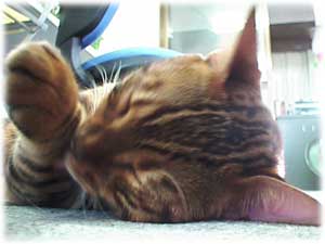 最近、フィガロはまめに毛繕いするようになった。 お腹や首の下まで念入りにやってる。そんなにやってたら、毛玉がお腹にたまっちゃうんじゃないかとちょっと心配になってきた。でも、フィガロは家にきてまだ一回のゲロも吐いたことないの。 |