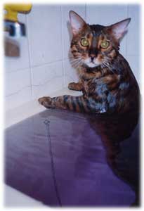 お風呂が大好きなフィガロは最近は湯船に足がつくようになったので、縁に掴まり立ちしてお湯につかることができます。 今まで抱っこしてでしか入れなかったので写真は撮れませんでしたが、一匹で立てるようになったのでバスタイムフォト初体験であります。 |