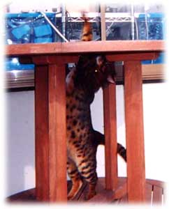 パラソルが挿せる穴ぽこの空いていてそこから一生懸命、手を出してるフィガロ。ブンブン動かしてるのわかる? |