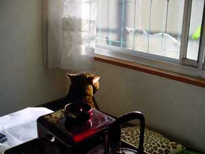結局、外猫さんが7〜8分後に飽きてどこかに行ってしまいました。行った途端フィガロは立ち上がり外をのぞき込んでました。(爆)なんてへなちょこ君なんでしょうか?この子は。。。(涙)そんなフィガロのお正月でした!(写真をクリックすると大きく見れます。) |