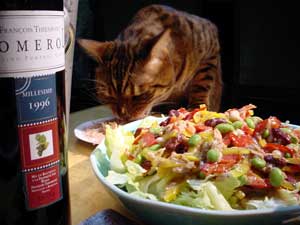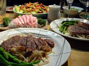 当然のように、フィガロにかこつけて人間も美味しいものにありつきました。(爆)シャンパンにワイン、オオトロにステーキ!わ〜。。。人間のが高く付いちゃった。。。(爆) |