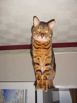 そして、ポーズ。モデルさんのように立ちつくしております。(笑)さすがに高さがあるので降りれなくて懇願している表情にもとれますが。。。(爆)フィガロはぽっちゃりしてるけど、こんなとこも歩けるんだぞ〜!(笑)