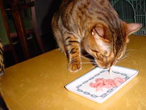 人間用に買ってきた「本マグロの中落ち」。猫には勿体ないけど、お裾分けしてみた。