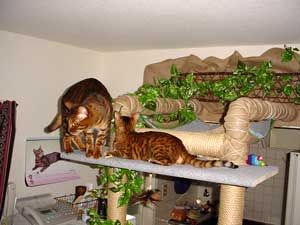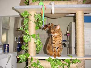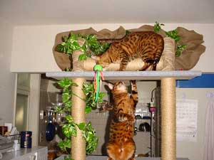 ベンガルに似合うよう、ジャングル風に仕上げてみました。2匹とも気に入ってくれた様子で良かった〜♪