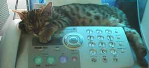 わざわざ、事務所のファックスフォンの上でお昼寝中。眠りなはれ、大きく成りなはれ。わてはそんなフィガロ君が大好きどす〜〜〜 |