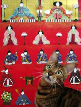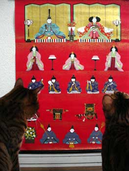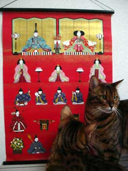 もうすぐ雛祭りということで、雛人形の変わりにタペストリーを飾りました♪