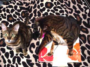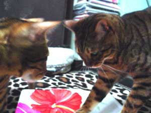 お買い物は、大きめのトレイでした。ハイビスカス柄が可愛いくて、お手頃価格だったので買っちゃいました♪まずは猫達にお披露目中。。。