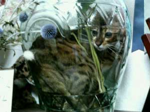 のこみちゃん、3年の歳月を経て、またしても花瓶に入り込んでいました。。。(笑)それも、和ダンスの上に置いてある花瓶だから、花瓶倒したら超キケンなので、すぐに救出しましたけどね。元祖アホ猫健在!? |