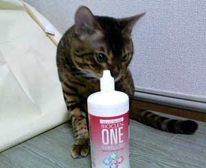 コンタクトレンズの洗浄兼保存液がいたくお気に入りのクラウディオ。レンズの出し入れをしていると、必ずやってきて、舐めさせろと邪魔をするの。こんな身体に良いとは思えないもの舐めさせたくないのにぃー!バカぁー!! |