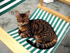 ディレクターズチェアーでゴージャスに横たわるフィガロ氏。 こんな時は品格みたいなものが感じられてベンガル万歳!とか思っちゃう。 |