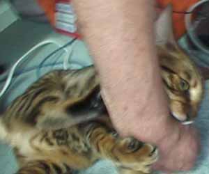 初めて会う人にはおとなしいフィガロくんも、親しくなった人には激しく遊んでくれます。最初、じゃれてるんだけど、勢いづいちゃって舐めたり噛んだり、舐めたり噛んだり、蹴ったり噛んだり、蹴ったり噛んだり・・・・・ |
