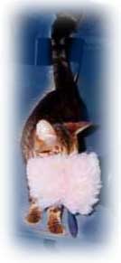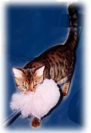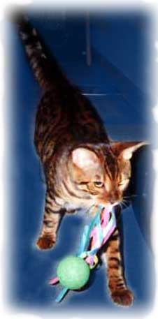 フィガロはボール投げも好き! ボールも途中まではちゃんと持ってきてくれます。 投げる振りして「猫だまし」という技をやると、だまされて向こうにぶっとんで行きます。それも面白いのね。 |