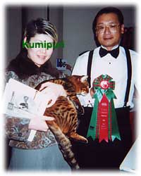 10th Cat Show Dec.24.2000 大田区産業プラザにて フィガロが初めてキャットショーに出てみました。 キャットショーなんてフィガロには縁がないと思っていたので、自分でもびっくりしています。ベンガルのブリーダーのゼフィロスさんに「今度のクリスマスのキャットショーに出陳してみない?」と声を掛けてもらったことから事が始まりました。 |