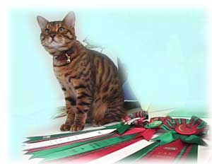 ゼフィロスさんは自慢の愛猫ワーペイントくんがキツンクラスでBESTキツンをとっていました。それはそれは素晴らしいロゼットとグリッターを持つベンガルです。ワーペイントくん、おめでとうございます!そしてありがとうございました。 |