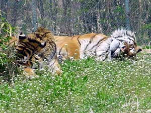 | 2003年4月某日。またまたホワイトタイガーの赤ちゃんを抱きたくなって、有志達と3人で群馬サファリパークに行って参りました!どうも、いい歳して猛獣の赤ちゃんが好きというヤツは、私以外にもいるみたいで何故か安心しました。(笑)前回、行った時の赤ちゃんは大きかったけど、今回の赤ちゃんはまだまだチビのようで楽しみー♪今回も、サファリは車で2周しました。(爆) |