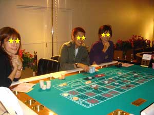ミドルコースは45分間なので、時間いっぱいまで、ディーラーと勝負出来ます!勝ったり負けたりしながら、みんなそこそこチップを持っていました。そして、持ってるチップを全部突っ込んで、最後の一勝負をしました!。。。しかし、結果は、ディーラーの「ブラックジャック」。。。全員スッカラカンで大負けという、オチで終了しました。(爆)