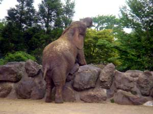 このゾウは手を付いて、こんな変な格好もするんだよ♪そしてチ○コ出てるし。。。(笑)面白かった♪